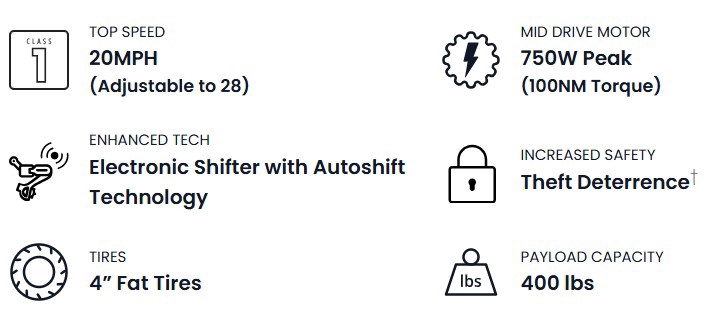 Aventure M is the perfect blend of rugged capability, performance, and technology to help you explore further than ever before. With meticulously designed frame geometry, a 80mm suspension fork, and 4.0" tires, there's nowhere the Aventure M can't take you. The Aventon A100 mid drive motor provides enough torque and power to conquer any terrain, giving you a responsive ride feel that can be easily customized with Ride Tune capabilities. With Aventon's electronic autoshift functionality ensuring you're always in the right gear at the right time, you can focus solely on the making it to the next mountain peak. ACU technology brings a host of connectivity and added security features including GPS† tracking and an integrated lock, while the updated display brings you important metrics like torque, cadence, and power to help you maximize every ride. No matter where you want to go, Aventure M will get you there.