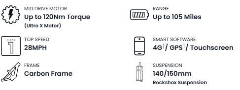 The Aventon Current EXP is an eMTB built for riders who want real trail performance with seamless tech integration and top tier power delivery. Designed around Aventon’s Ultro X mid-drive motor, 140mm of rear travel, and a 150mm fork, the Current blends modern geometry, balanced suspension, and in-house technology to deliver full capability on every climb and confidence on every descent. Its 29" wheels, 64.6 degree head angle, 76.6 degree seat tube angle, and 445 millimeter chainstays create a ride that feels planted and capable while staying responsive and playful. Every detail of the Current is designed to make trail riding more accessible and enjoyable. It features Aventon’s wireless control pad and touchscreen display for intuitive on-trail control, plus full ACU connectivity with 4G connection, GPS tracking, an integrated alarm system, and more. Riders can personalize motor performance with Ride Tune customization, and make the most of their rides with integrated tech like Wheel Lift Control and Air Time tracking. Maxxis tubeless compatible tires along with Sram and Rockshox components ensure that the Current feels ready for anything from backcountry adventures to smashing singletrack.